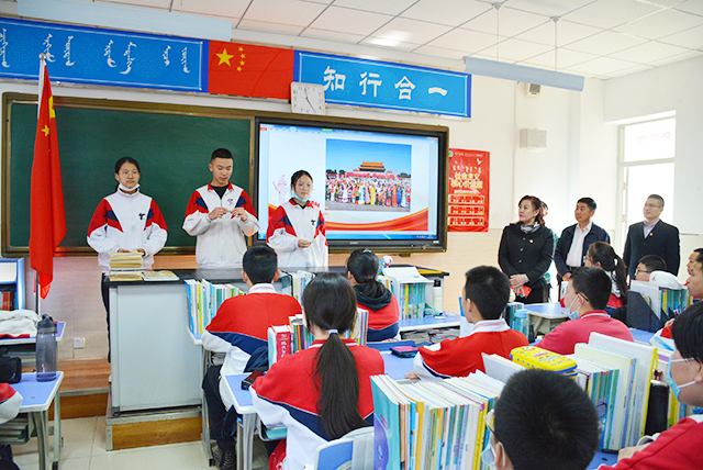 3月22日下午班会时间,我校高二、初二年级各班举行了“铸牢共同体,共圆中国梦”主题班会课展示活动。各班级围绕主题,组织了形式多样、内涵深刻的活动。党委书记乌仁图亚、副书记副校长张志刚、学生处主任孙越东观摩了各班的班会。