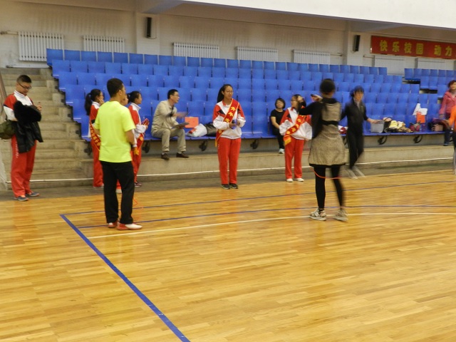 志愿学生在教职工运动会中进行服务工作