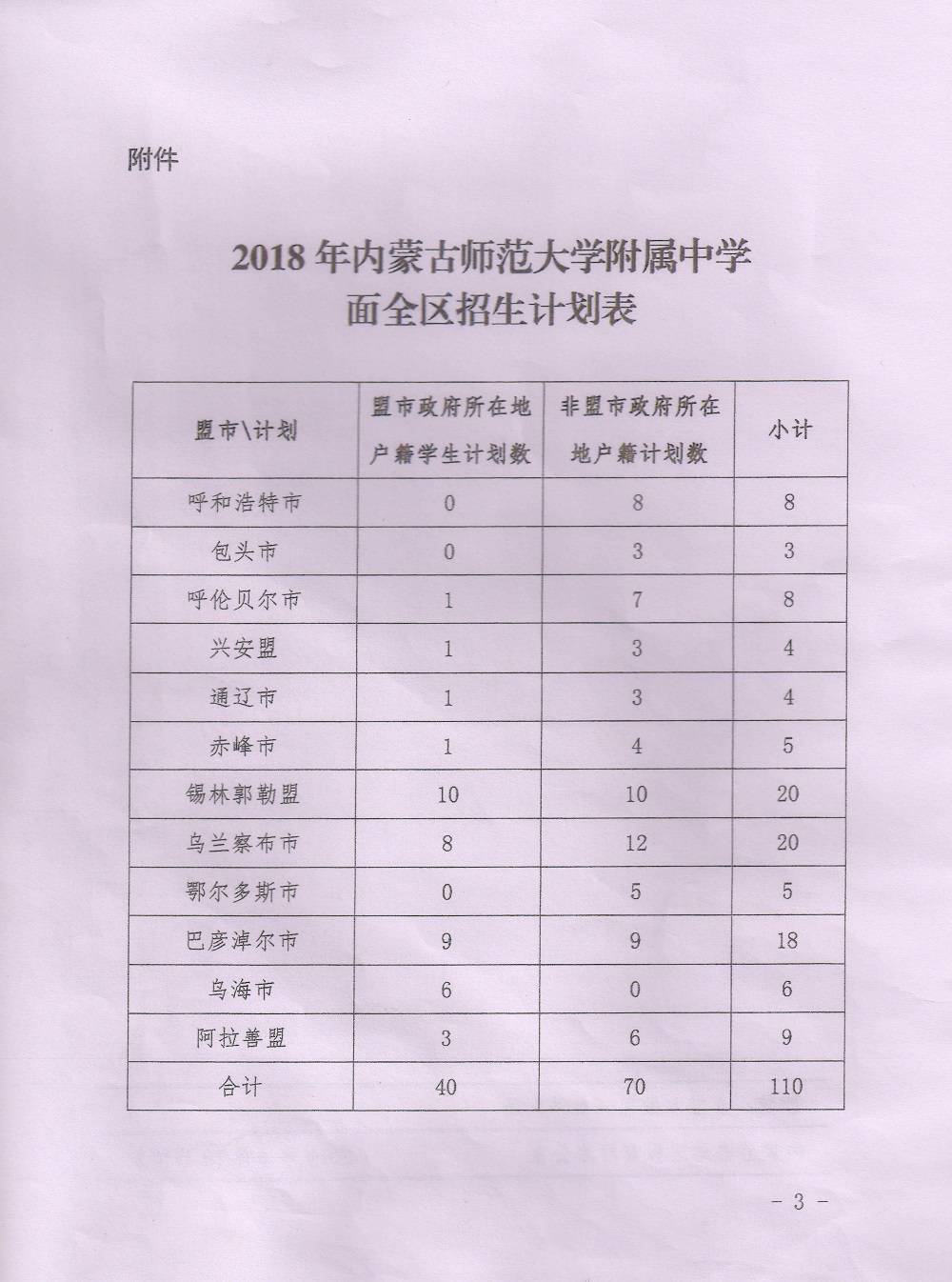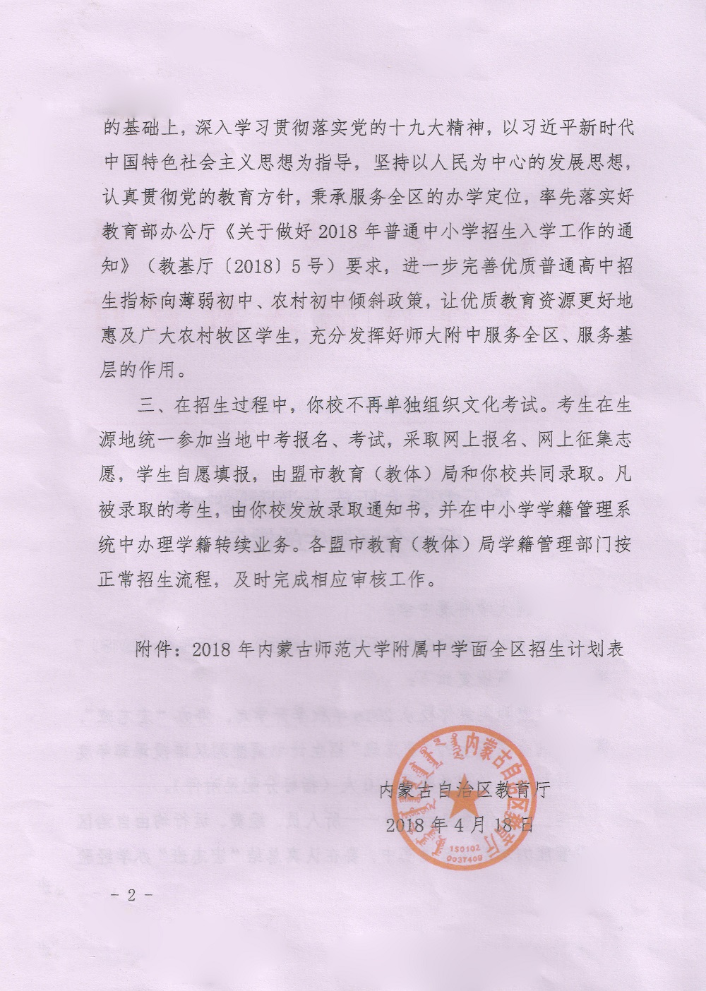 2018年内蒙古师范大学附属中学汉语授课部面向内蒙古各盟市招生简章