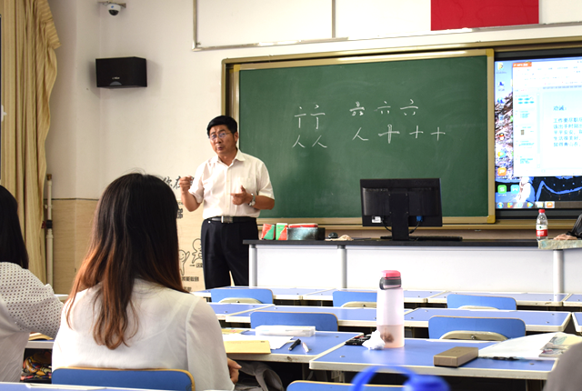 随后,张志刚主任对新入职青年教师的教学基本功进行了培训。提出了优秀板书对于教师职业的重要性,并且鼓励青年教师要通过临摹毛笔字帖训练笔锋坚持勤奋练习。张志刚主任还在黑板上亲自示范了板书的写法,并对青年教师的板书进行了细致的点评,要求青年教师利用课下时间完成一幅书法作品。
