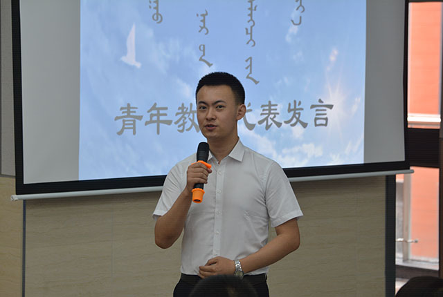 党总支乌仁图亚书记介绍新入职青年教师情况