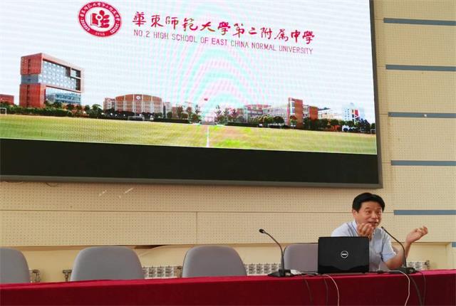 郝明华副校长、郭继成副主任与老师们在华东师大二附中听课改报告