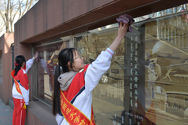 为推动学雷锋志愿服务活动常态化,大力弘扬雷锋精神,深入开展劳动教育,3月4日,我校组织开展“学雷锋志愿服务活动”。活动由学生处、团委主办,内蒙古师范大学附属中学青年志愿者联合会与非毕业年级各班联合承办,对校园周围环境进行清洁打扫。同学们积极动手,清扫校门口天桥及周边设施,整理摆放共享单车,清洁橱窗展板,并对周边“城市牛皮癣”小广告等进行清除。