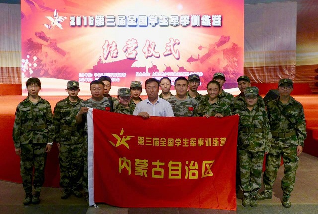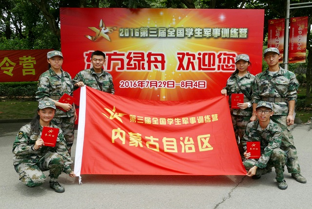 7月28日至8月4日, 2016第三届全国学生军事训练营在上海市东方绿舟隆重举行。上海市教育委员会副主任王平等领导出席了8月1日的开营仪式。东方绿舟迎来了来自全国30个省、自治区、直辖市共600余人的代表队,内蒙古自治区派出了由内蒙古师大附中和内蒙古艺术学院组成的代表队。领队老师为内蒙古师范大学武装学院院长庞民,我校带队老师为团委副书记孙越东,营员为高二11班郭杨,高二12班褚心浩、连高阳,高二13班石大庆、段景普,高二15班孟雅琦6位同学。