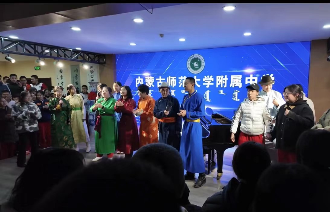 合唱社在美育中心举行了社团展演活动。此次表演不仅曲目丰富、风格多样,同时还设计了多个有趣好玩的互动环节增强了与同学们之间的联系。同学们以铸牢中华民族共同体意识为主线,演唱经典民族歌曲,成为了附中校园里的一处靓丽的风景。
