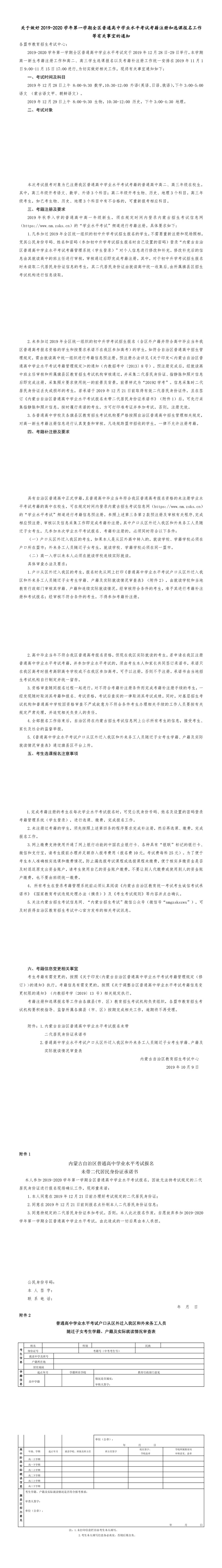 关于做好2019-2020学年第一学期全区普通高中学业水平考试考籍注册和选课报名工作等有关事宜的通知