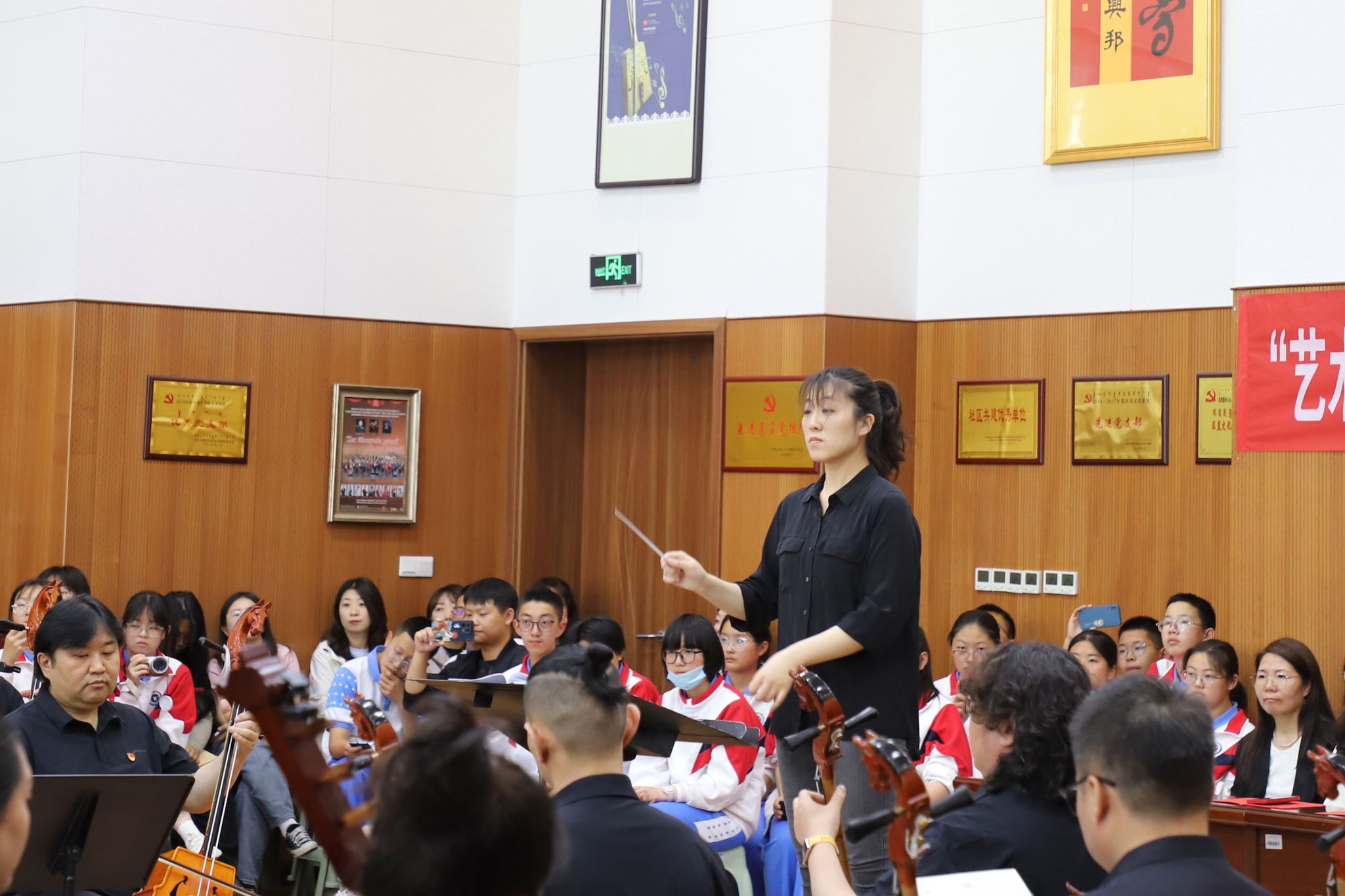 活动以两首大型民族管弦乐的演绎结尾,由50余位艺术家共同演奏,为同学们现场了一场视听盛宴,在指挥家精妙的协调下,乐声连绵不息,将辽阔草原上奔腾的蒙古马描摹呈现,展示出新时代北疆文化的蓬勃生机。