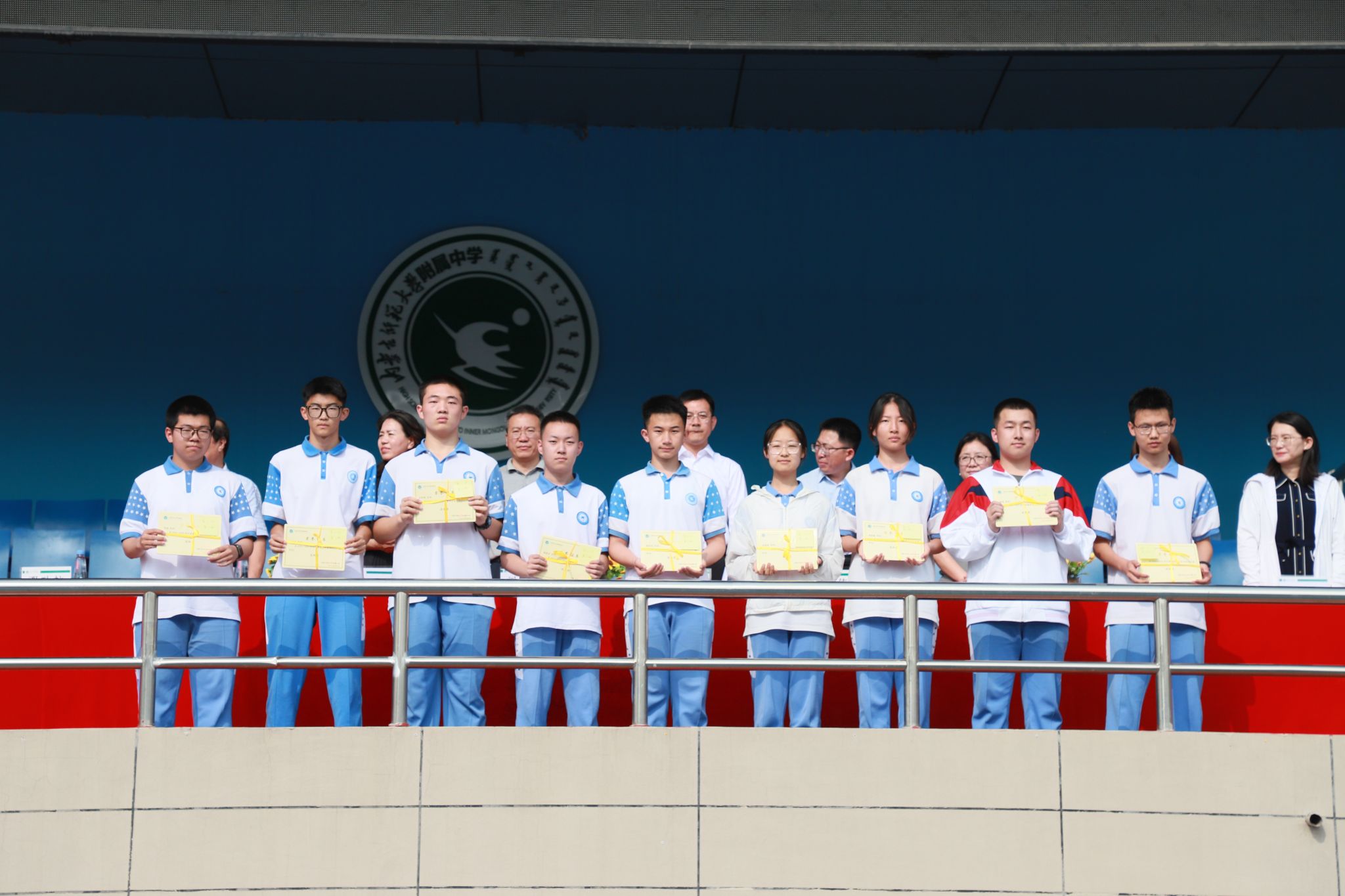 大会宣读了本学年度学生德育工作《先进个人表彰决定》。在热烈掌声中,颁奖环节正式开始。获奖的学生代表精神饱满地依次登台,从校领导手中接过荣誉证书。