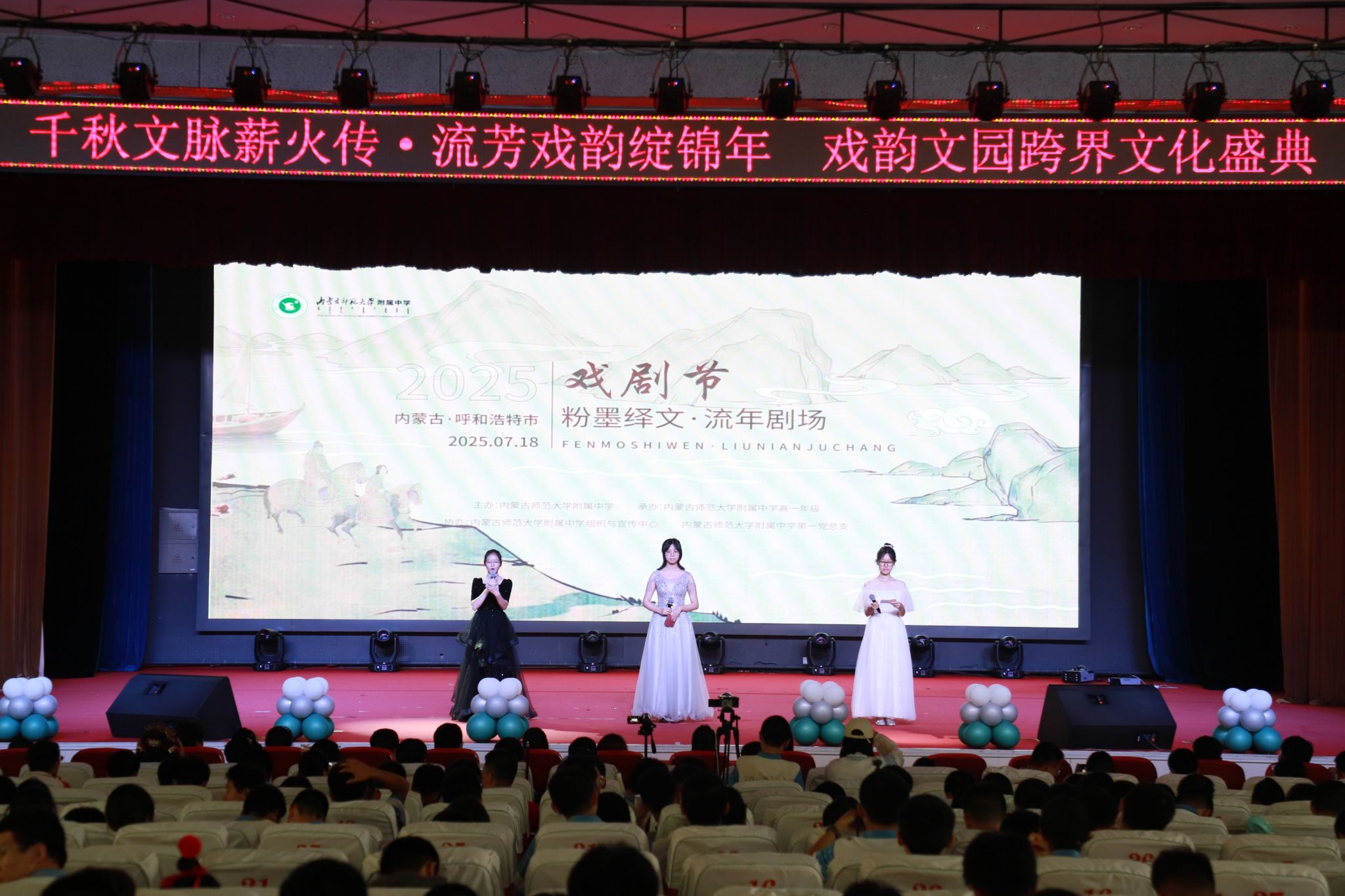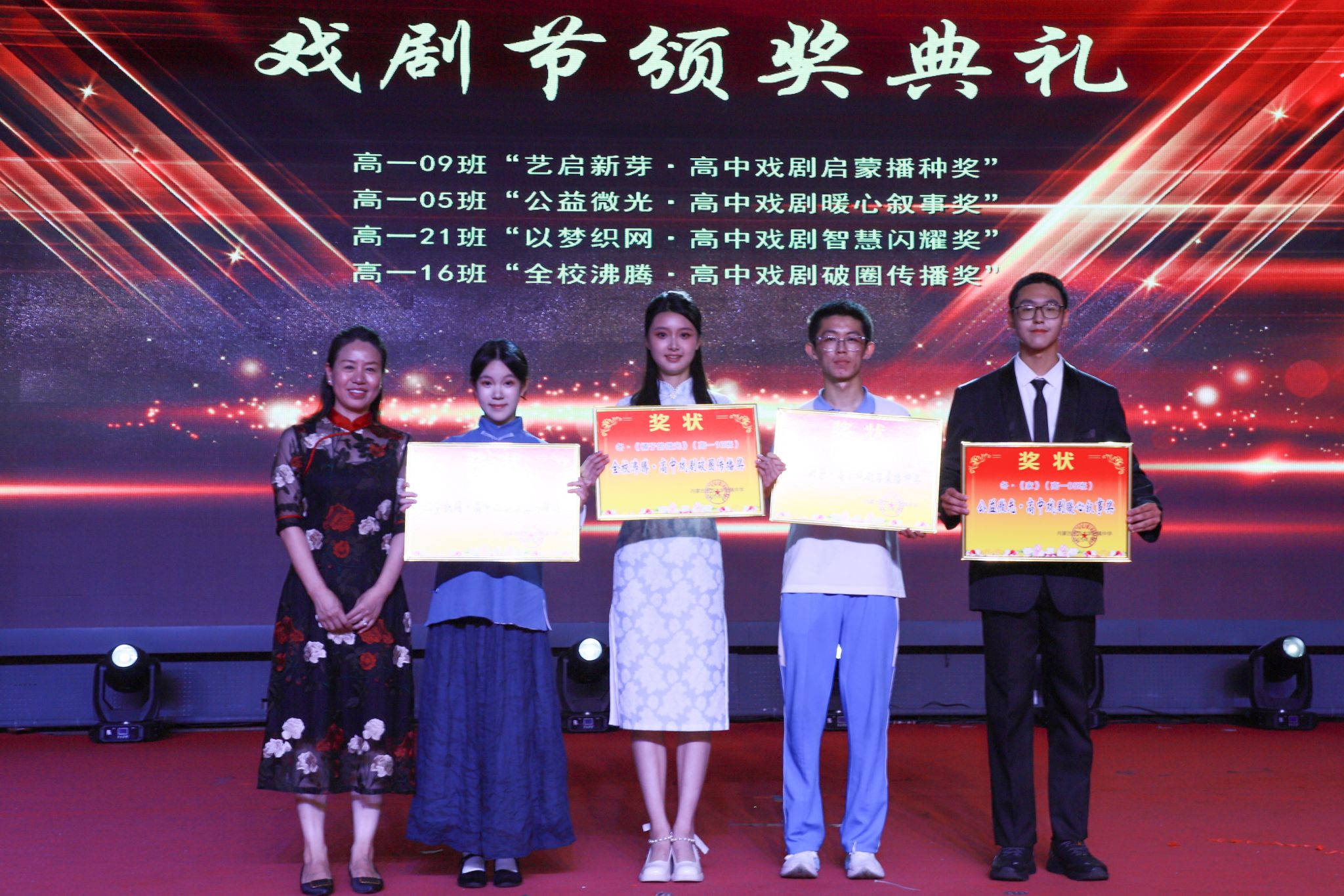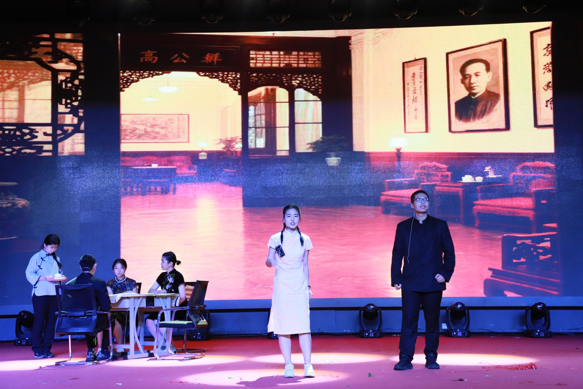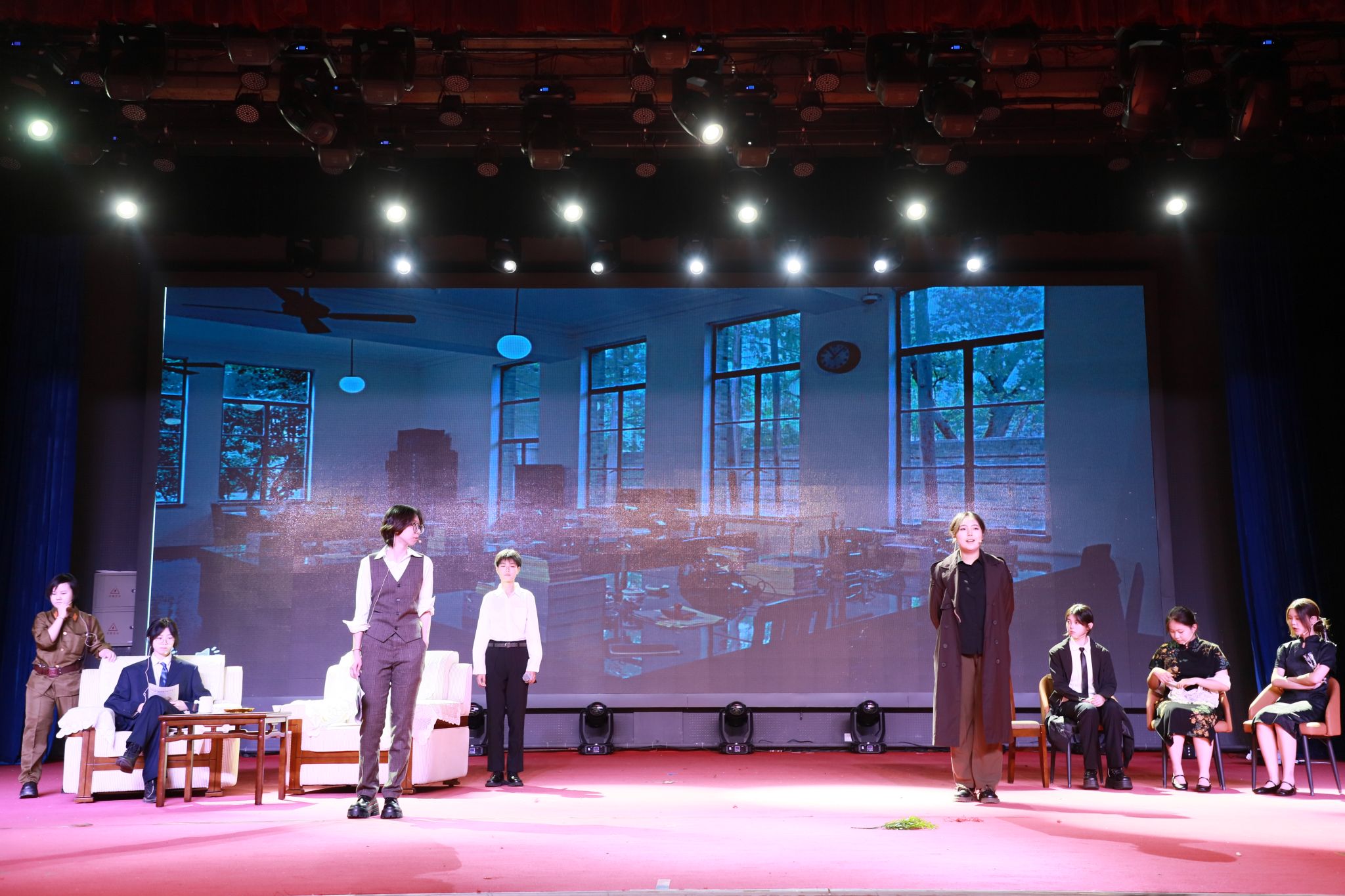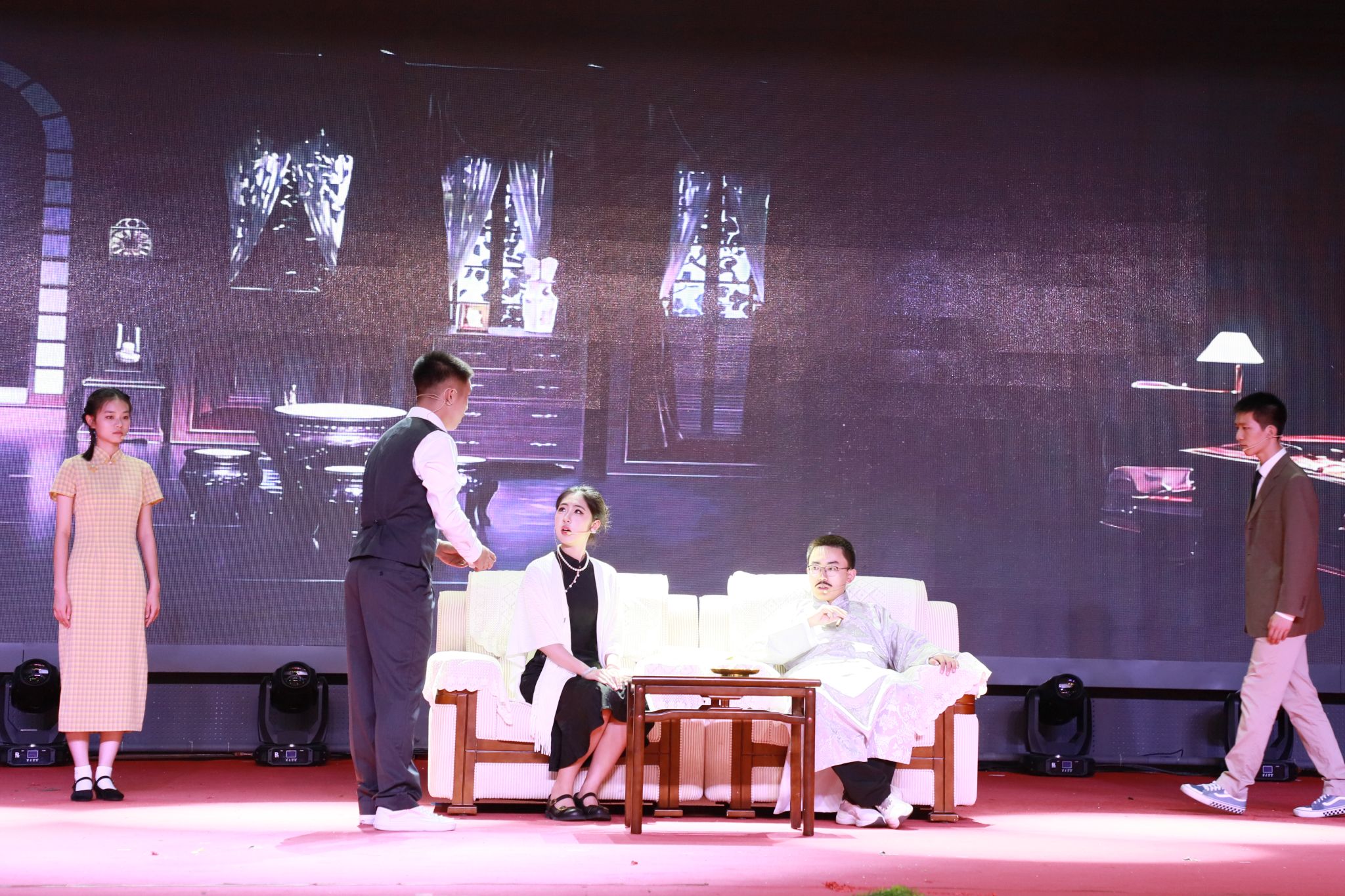 随后,四季的篇章逐次展演。同学们承载着对春天万物生机的渴盼,对自由美好的向往,上演了一幕幕精彩的剧目。雷雨声阵阵,打破的,不仅是封建家庭的桎梏,向往的,更是对自由的憧憬。仲夏夜之梦,春色宫墙柳,舞袖翩翩,声容流转,倾诉着在这片沃土上曾发生过的一切美好,流淌过的每一滴热泪。台下师生沉浸其中,掌声雷动,将全场全场气氛推向了高潮。