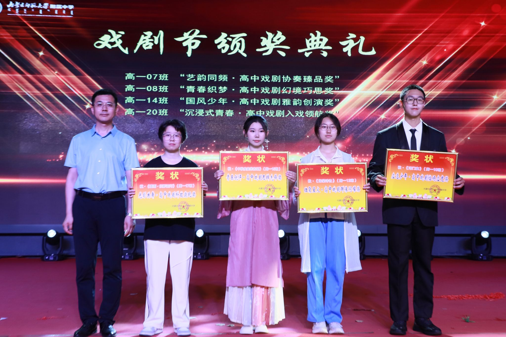 本次戏剧节,师生们发挥了丰富的想象力与创造力,将课本上的文字以丰富形式、深刻内涵和热烈氛围展现出来,让师生对戏剧的热爱在附中这片沃土上熊熊燎原。本次戏剧佳节,不仅仅是一场精彩绝伦的演出,更是一次新思想的启迪、一次创意的碰撞、一次青春活力的集体表达。这场艺术盛宴的华彩乐章,正翩翩起舞,承载着同学们的付出,老师们的心血,鸣响未来的号角。