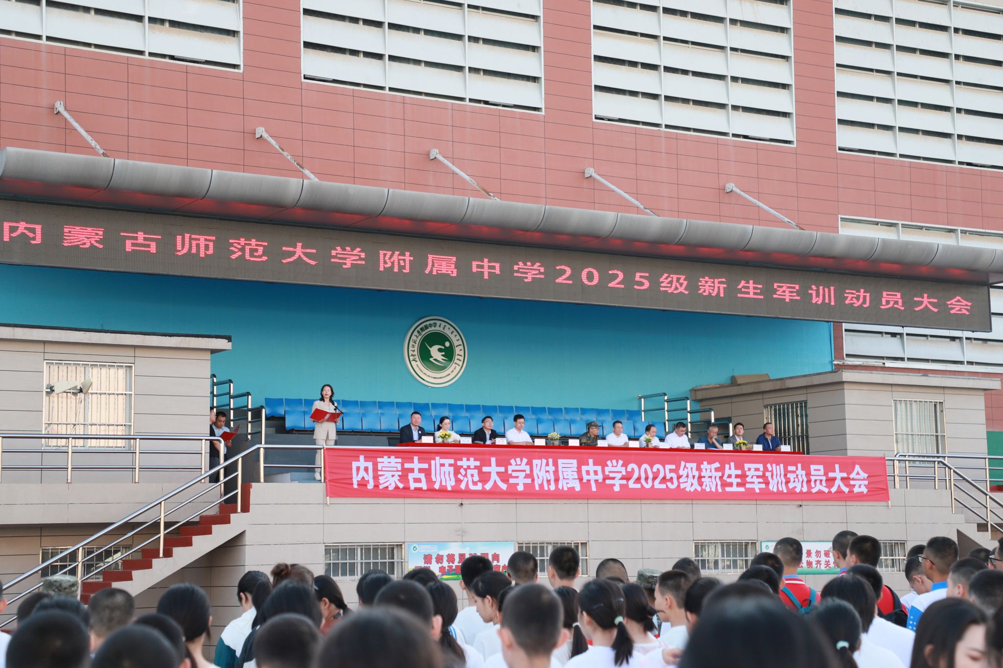 莘莘学子身着戎装,英姿飒爽;不畏骄阳磨意志,斗志昂扬迎挑战。8月24日上午,我校隆重举行2025级新生军训动员大会。校领导及部分环节干部、参训教官,2025级初一和高一年级主任、班主任及全体新生共同参加。