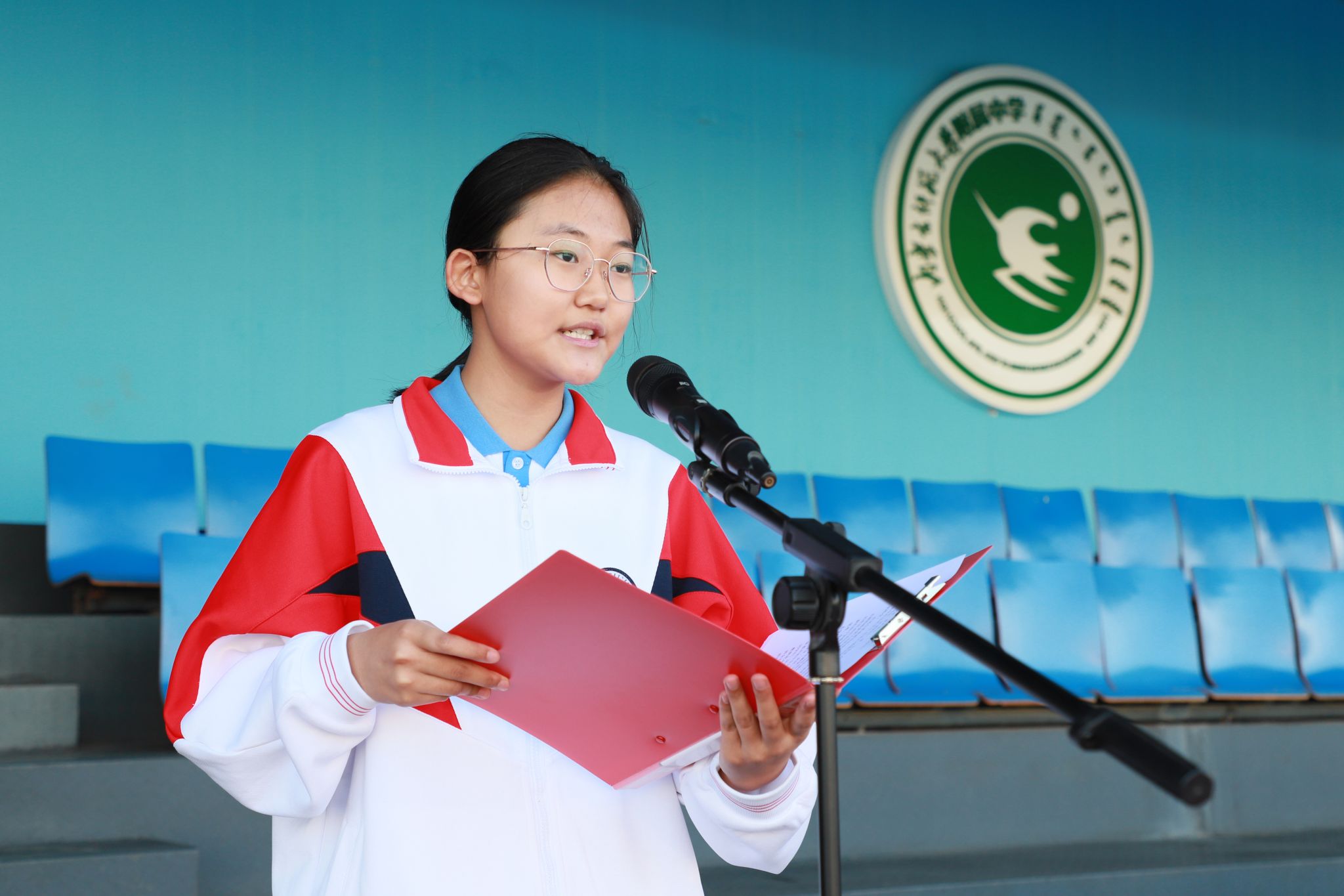 高一(18)班学生代表发言:“大鹏一日同风起,扶摇直上九万里。”愿以全新的态度迎接新的学习阶段,立大志、明大德、成大才、担大任,认真训练,努力学习,成就梦想。