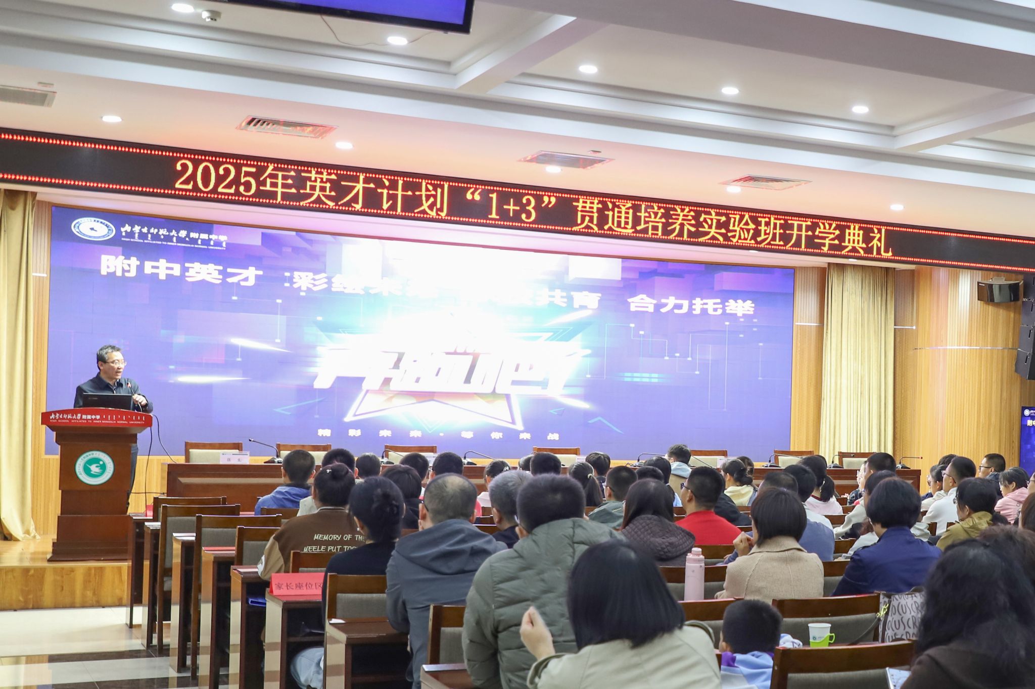 开学典礼上,屏幕上播放着宣传片,讲述了附中的春秋,而我在那一刻才深深确定了,我是附中人,就要成为英才,成就自我。“一曲新词酒一杯,去年天气旧亭台。”新词吟旧景,也歌未来。